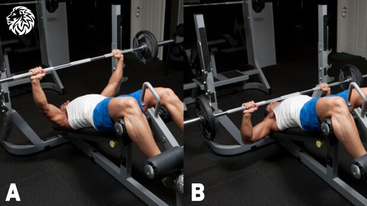 Follow these steps to perform the decline barbell bench press with proper form: