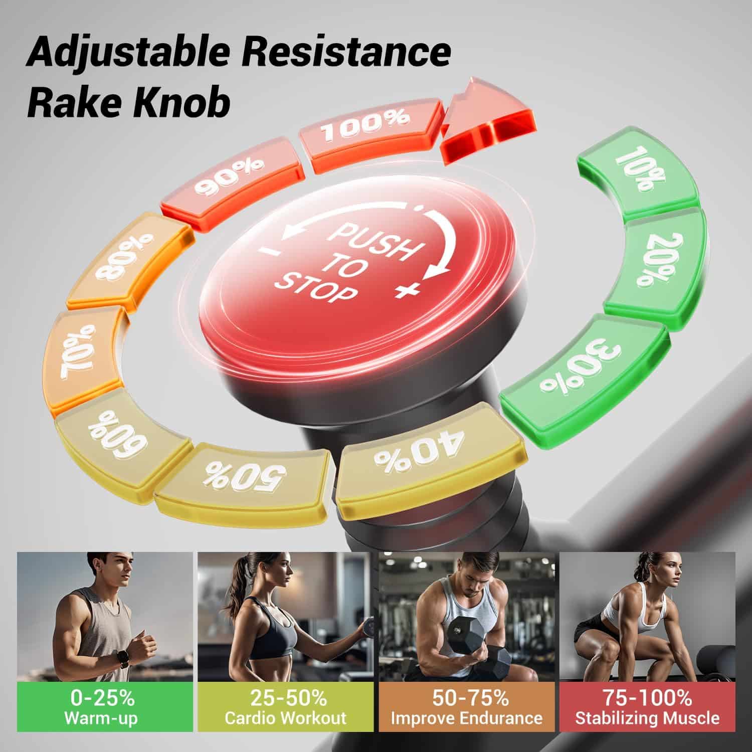 Massive Resistance Range: Micro-adjustable friction resistance with 100 resistance levels gives full control over workout intensity.