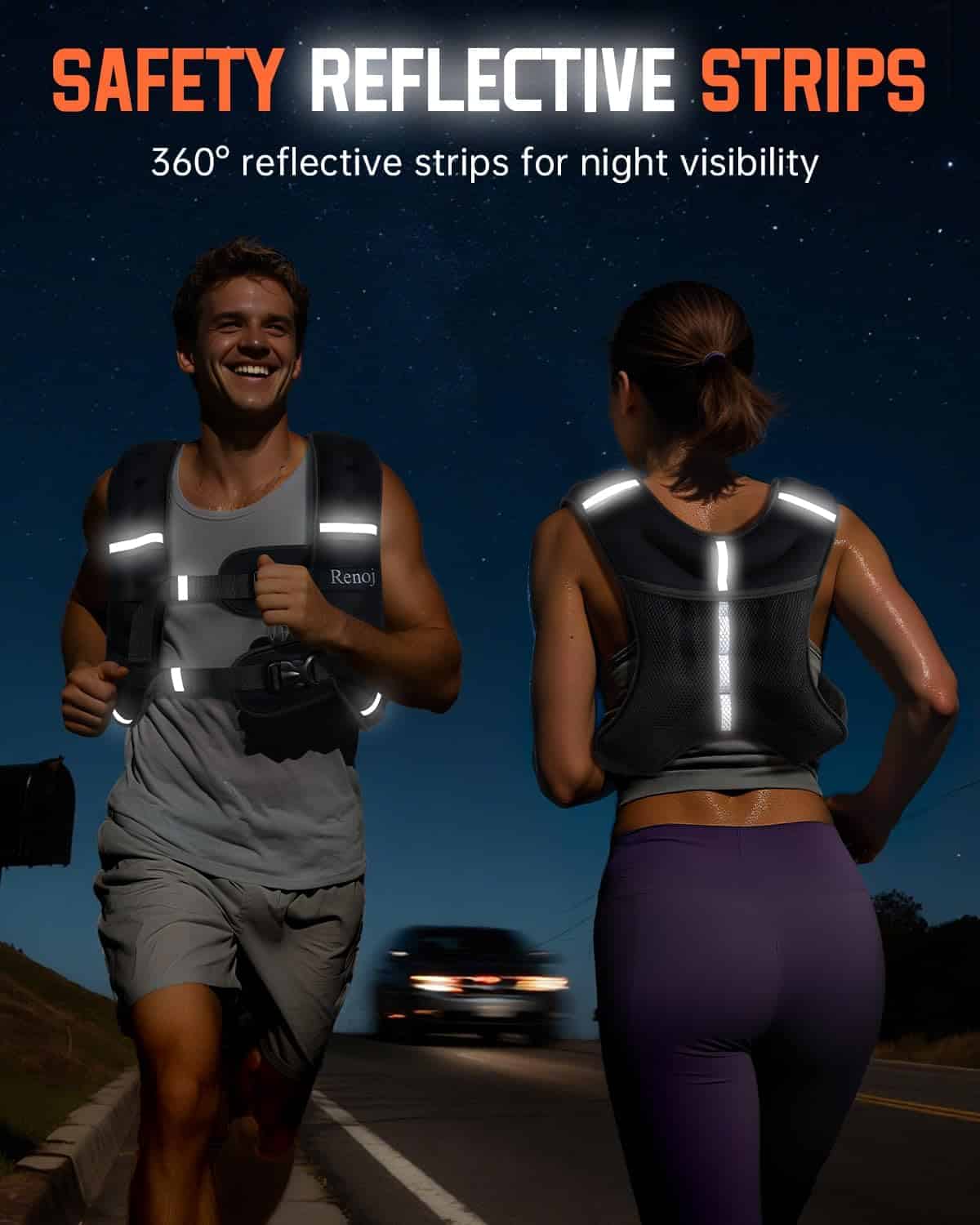 Yes — the vest includes reflective strips on the front and back for added visibility and safety during early morning or evening workouts.