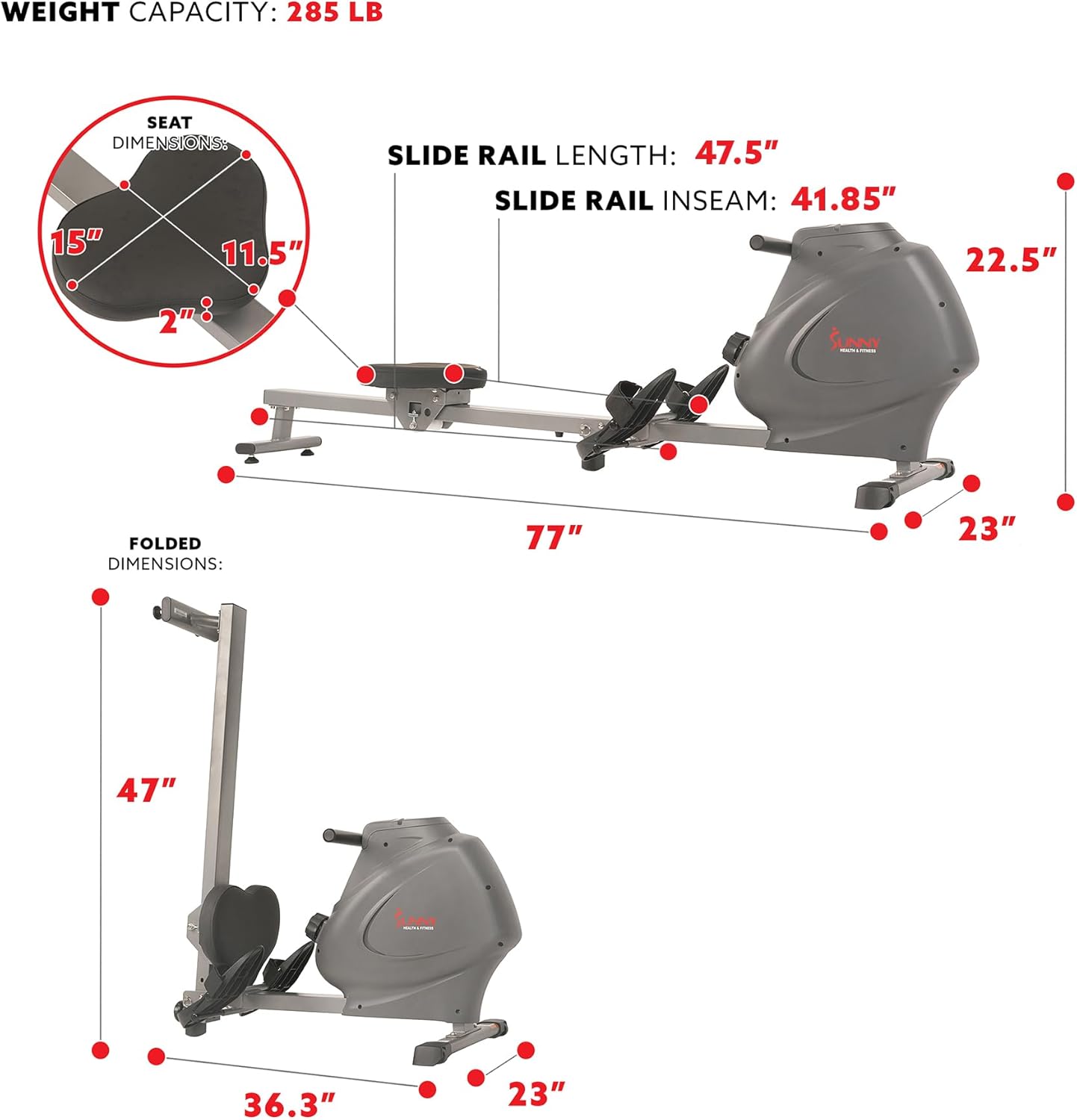 Revolutionize your home workouts with the SF-RW5801 Synergy Power Motion Magnetic Rowing Machine from Sunny Health & Fitness. Engineered for space-conscious users without compromising on power or performance, this rower delivers total-body cardio and strength training in a compact, foldable frame. Whether you’re a beginner or a seasoned athlete, you’ll appreciate its smooth glide, adjustable resistance, and LCD monitor tracking key metrics to keep you motivated and on target.