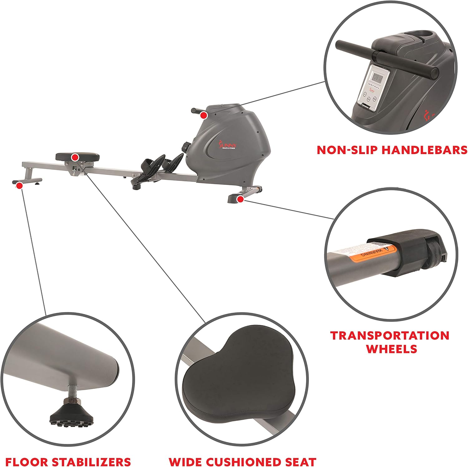 Sunny Health & Fitness Compact Folding Magnetic Rowing Machine