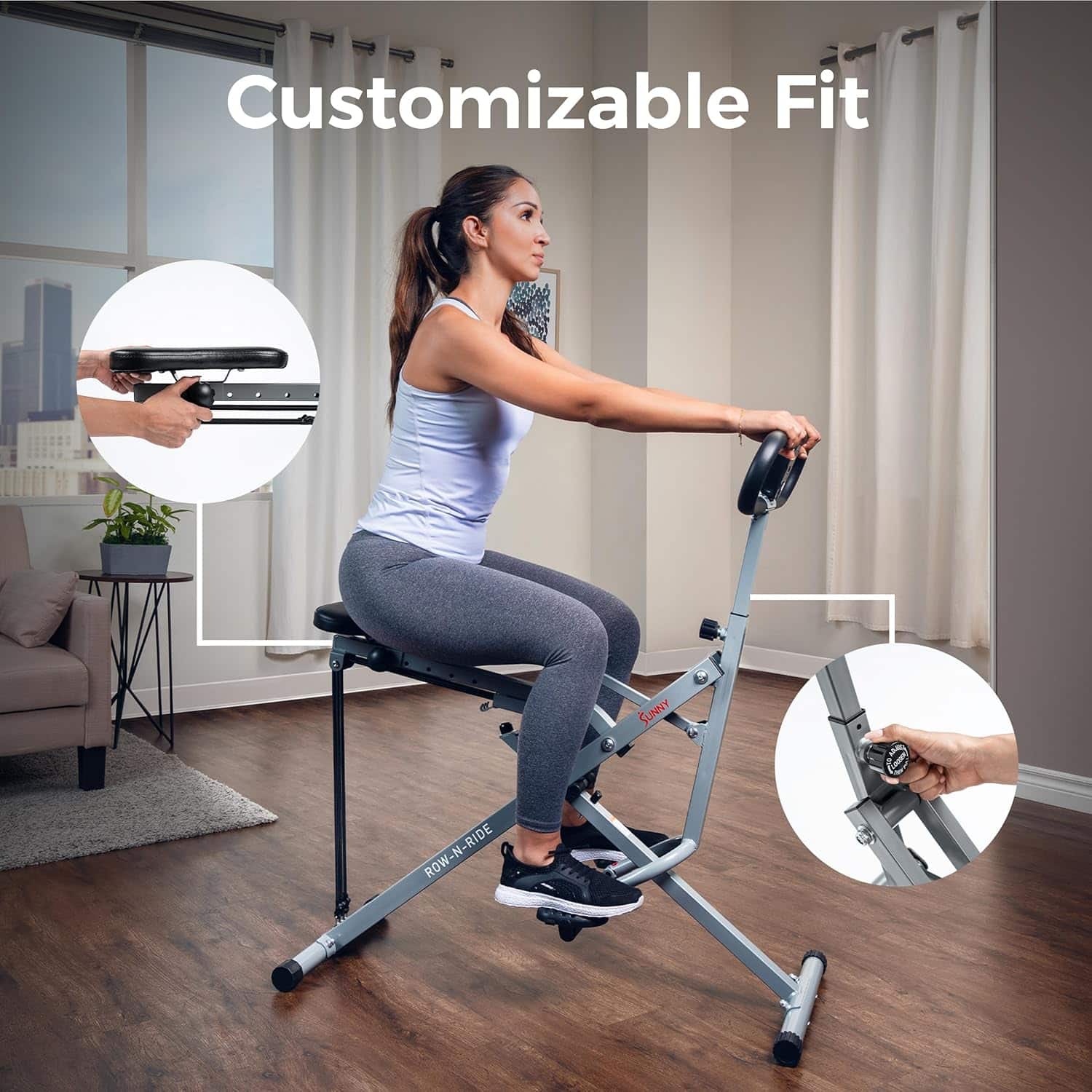 Redefine your home workouts with the Sunny Health & Fitness Row-N-Ride Trainer, a versatile squat assist machine that delivers an effective full-body workout without compromising your joints or your space. Backed by over 43,000 5-star reviews, this top-rated trainer strengthens and tones the glutes, quads, hamstrings, abs, back, and shoulders—all while keeping your posture in check.