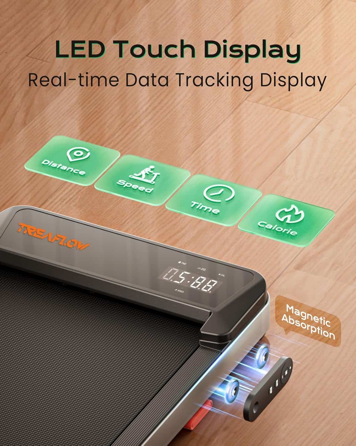 Looking to stay active during your workday or save time with at-home workouts? The TREAFLOW Walking Pad is the perfect solution. With its whisper-quiet motor, multi-functional LED display, and remote-controlled operation, you can track and manage your fitness progress with ease. Best of all, it arrives fully assembled and fits snugly under most furniture, making it ideal for apartments, dorm rooms, and small home offices.