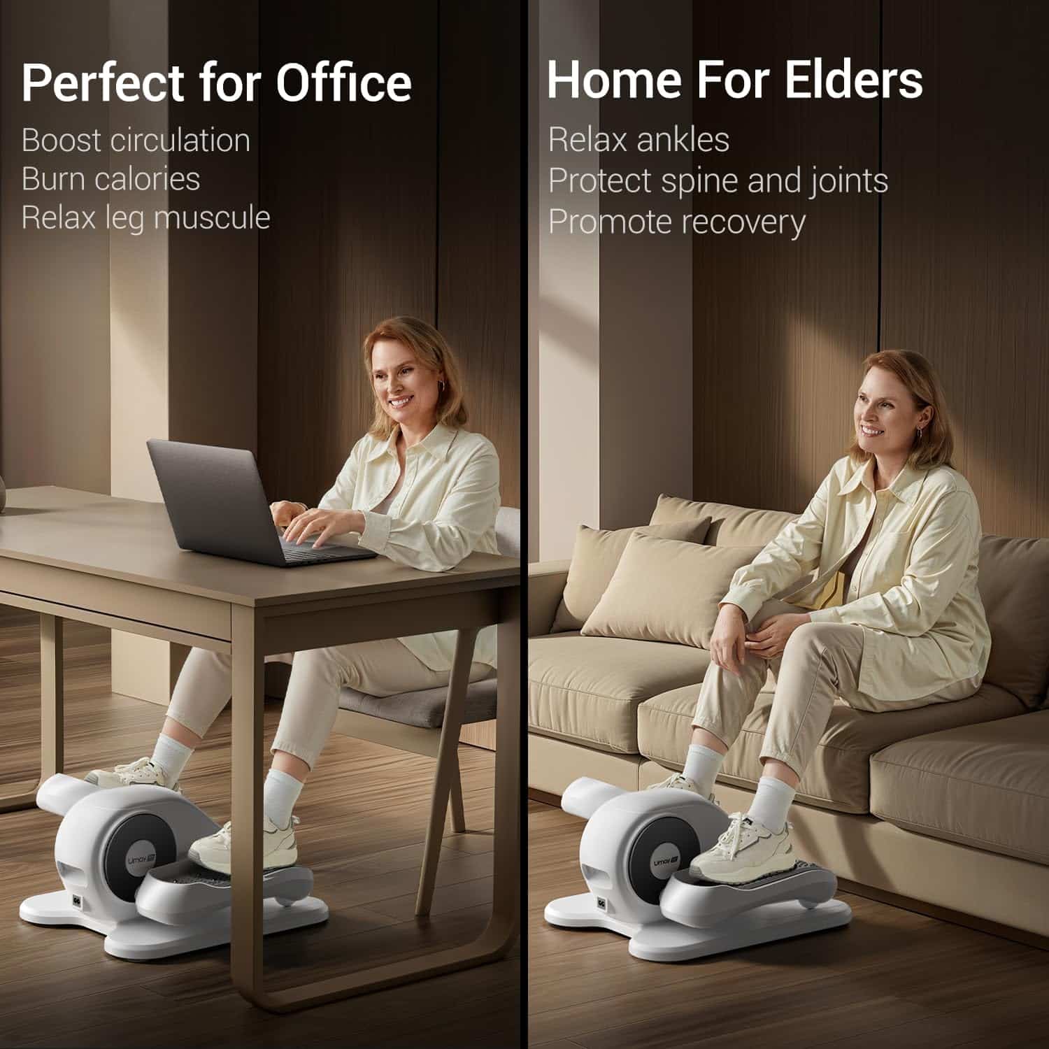 The UMAY Elliptical Exerciser is engineered for convenience, versatility, and effectiveness — offering a low-impact way to boost your physical activity during sedentary hours. Whether you’re working from home or at the office, this sleek and quiet elliptical fits seamlessly under your desk or table. Unlike bulky gym equipment, it’s compact, portable, and specifically designed to fit modern lifestyles.