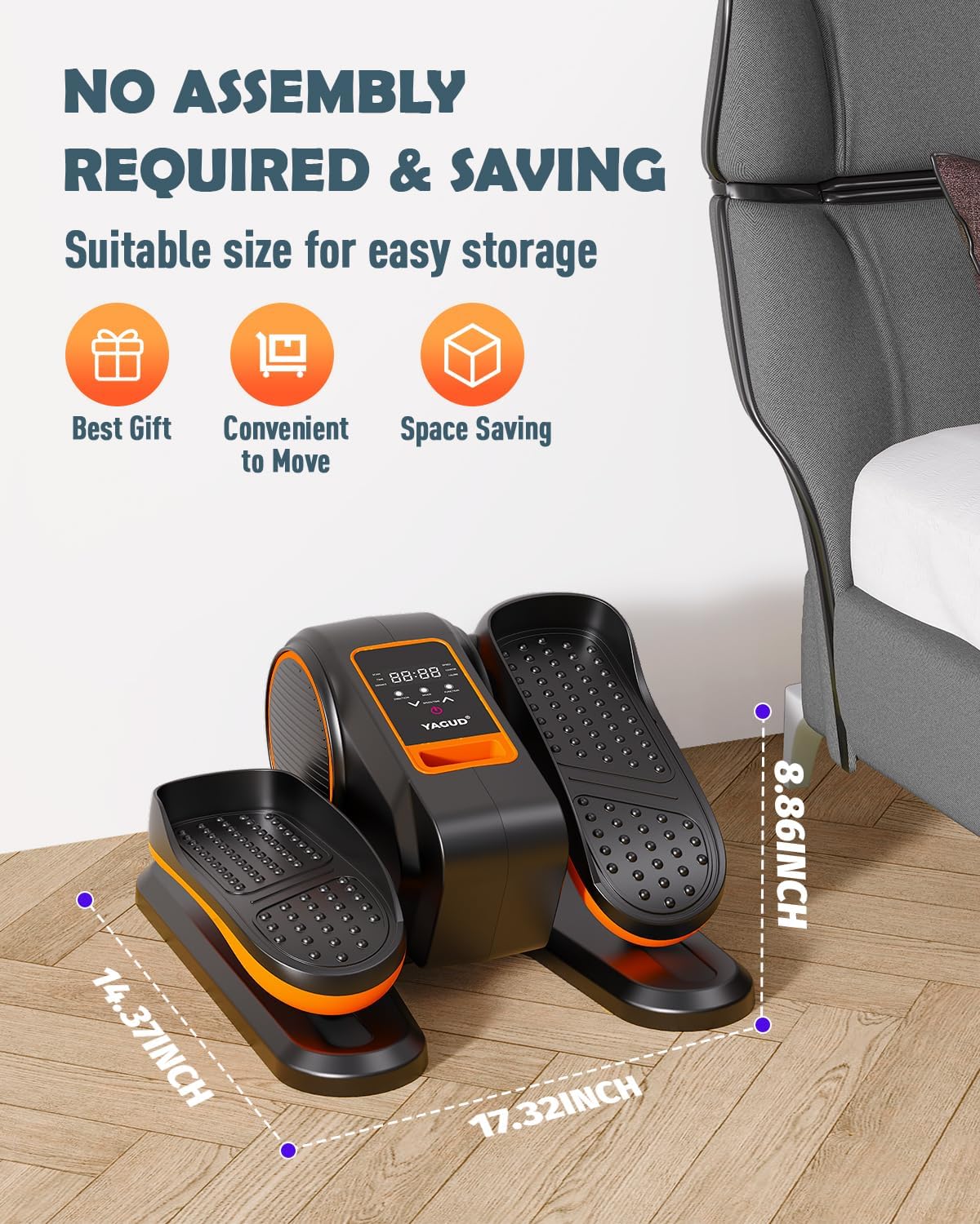 Staying active doesn’t always mean hitting the gym. The Yagud Under Desk Elliptical Machine offers a convenient, low-impact way to keep your legs moving, whether you’re working, watching TV, or relaxing. Especially ideal for seniors or those recovering from injury, this compact and fully assembled elliptical promotes improved blood circulation, joint flexibility, and light cardio—all while seated. Thanks to its ergonomic design and electric drive, users can enjoy hassle-free operation with adjustable speeds, forward/reverse motion, and a built-in LCD monitor to track progress in real time.